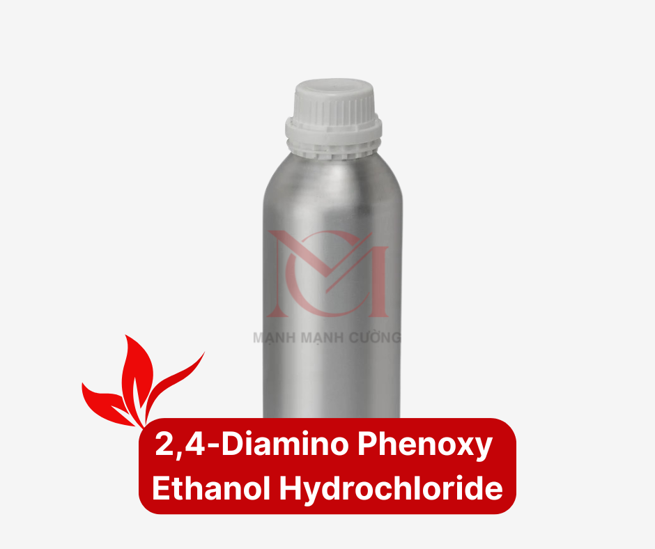 2-4-Diamino Phenoxy Ethanol Hydrochloride là muối hydrochloride của một aminophenol ether, được sử dụng như chất tạo màu trung gian (intermediate dye) trong thuốc nhuộm tóc. Chất này phản ứng với các chất oxy hóa (như hydrogen peroxide) để hình thành sắc tố ổn định trên tóc, giúp tạo màu lâu phai và đồng đều.